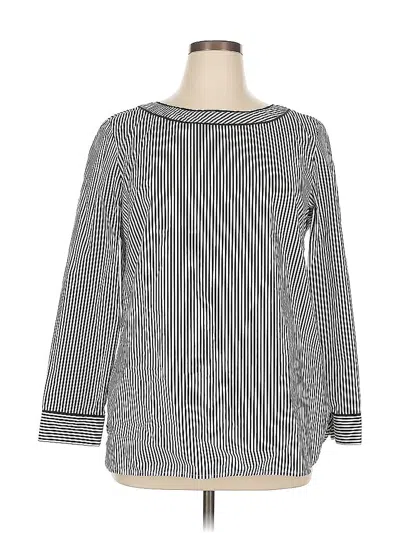 Pre-owned Long Sleeve Top Gray Stripes Pattern Boatneck Tops