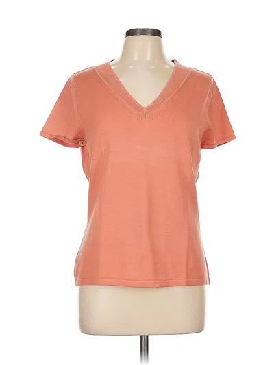 Pre-owned Short Sleeve Silk Top Orange Open Neckline Tops