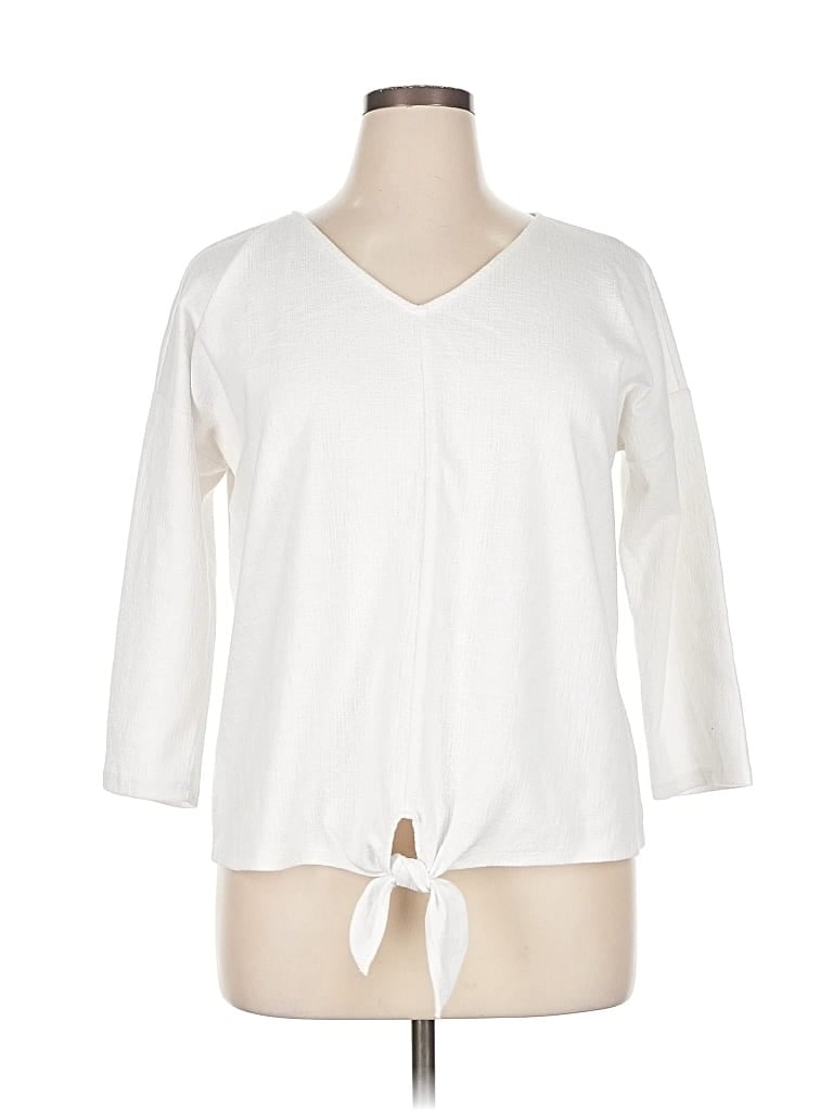 Pre-owned 3/4 Sleeve Top White V Neck Tops