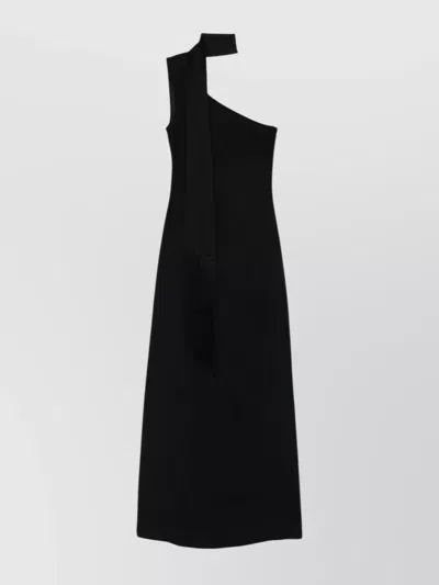 Fringed One-shoulder Long Dress In Black