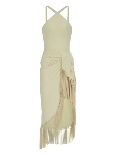 Gina Venti Feather-trimmed Midi Dress In Silver