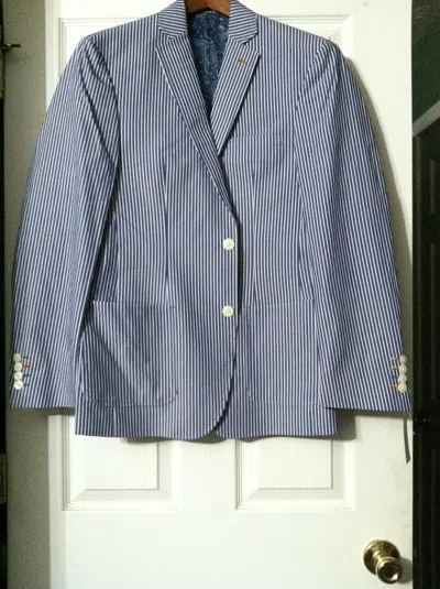Pre-owned Mens Blue 100%cotton Striped Sport Coat Jacket Blazer Size: S