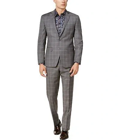 Pre-owned Mens Double Windowpane Formal Tuxedo In Gray