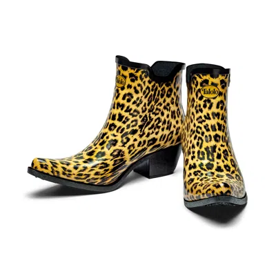Women's Leopard Spot Ankle Cowboy Boot Wellies In Yellow