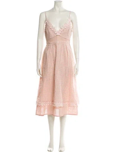 Pre-owned V-neck Midi Length Dress In Orange