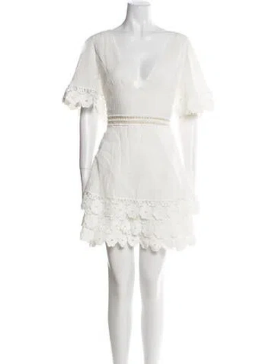 Pre-owned V-neck Mini Dress In White