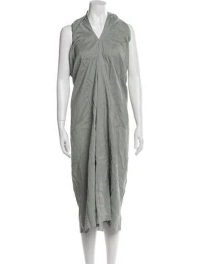 Pre-owned V-neck Midi Length Dress In Green