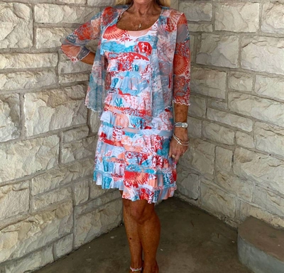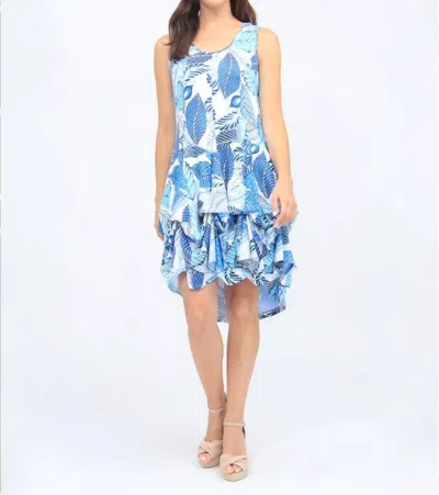 Sleeveless Tropical Print Ruffle Dress In Multi Blue