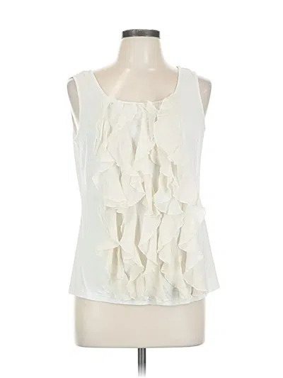 Pre-owned Sleeveless Silk Top Ivory Ruffles Neckline Tops In White