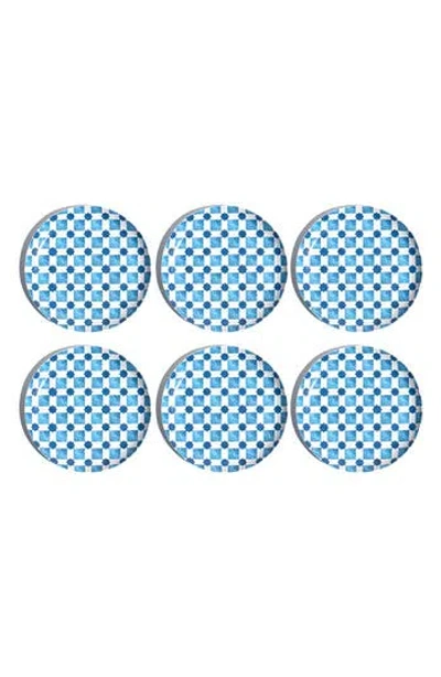 Set Of Six Palazzo Geometric Melamine Plates In Blue