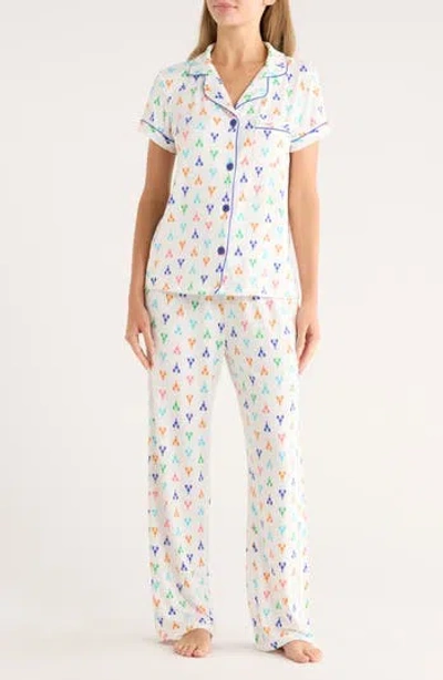 Kine Short Sleeve Button-up Shirt & Shorts Pajamas In Provincial Blue