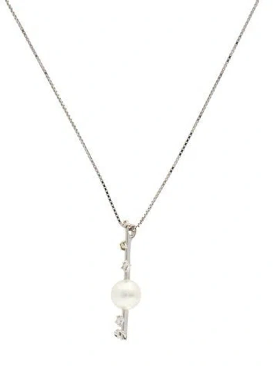 Pre-owned 18k Pearl & Diamond Pendant Necklace, 16" In Multi
