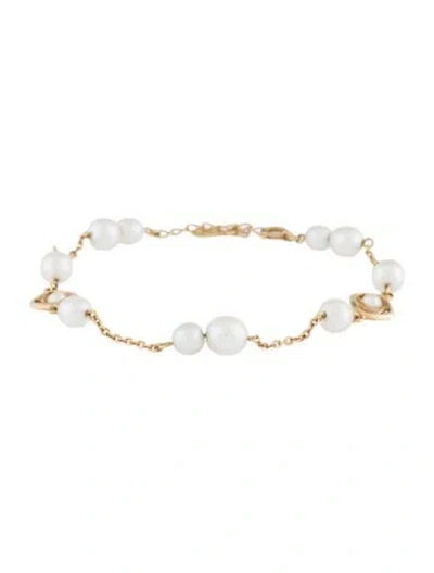 Pre-owned 18k Pearl Station Bracelet, 6.5" In Multi
