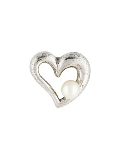Pre-owned Cultured Pearl Heart Stick Pin Brooch In Multi