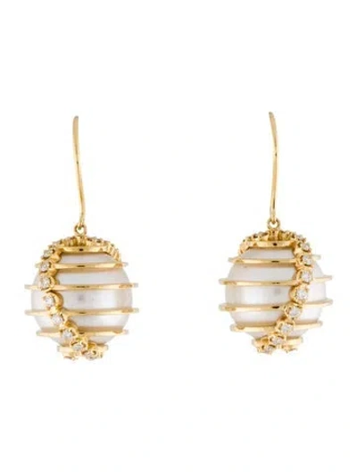 Pre-owned X Mélanie Georgacopoulos 18k South Sea Cultured Pearl & Diamond Wired Drop Earrings In Multi