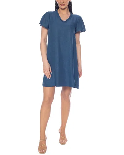 Macarena Flutter Sleeve Ruffle V Neck In Blue