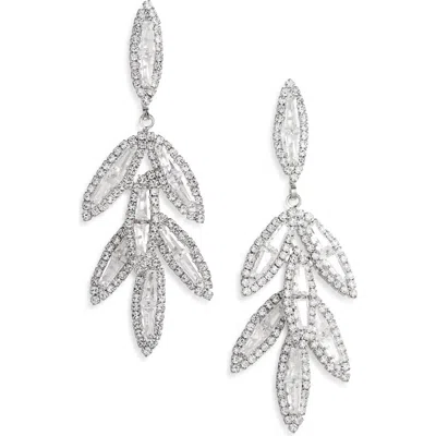 Cz Leaf Drop Earrings In Metallic