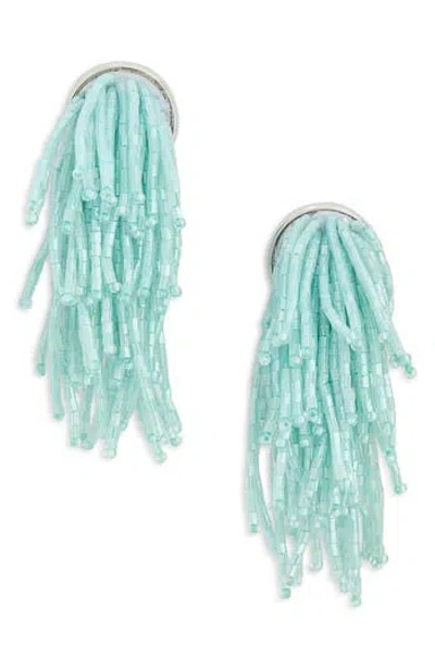 Seed Bead Fringe Earrings In Blue