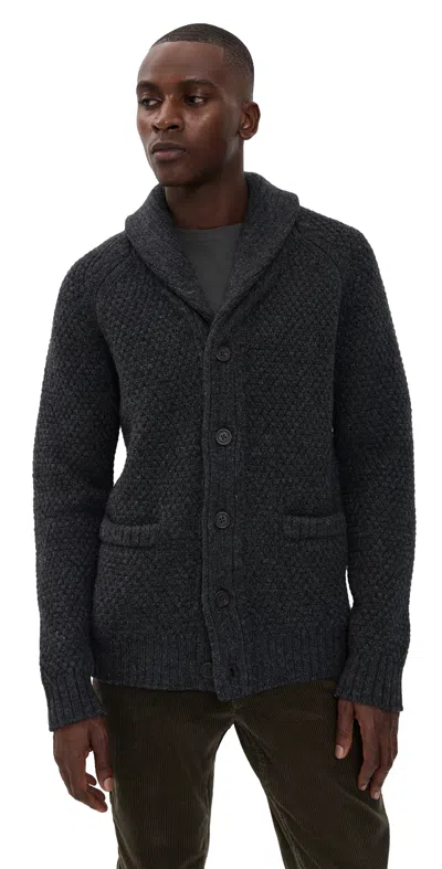 The Fisherman Shawl Cardigan Heather Coal Merino In Black