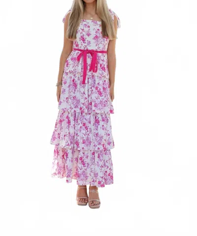 Here She Comes Floral Tiered Print Midi Dress In Pink In Purple