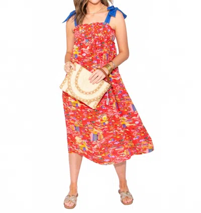Women's Summer Canvas Tie Straps Midi Dress In Multi