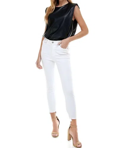 Tammy Pleather Sleeveless Power Shoulder Top In Black In Animal Print