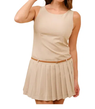 Feel The Flutter Pleated Dress In Khaki In Green