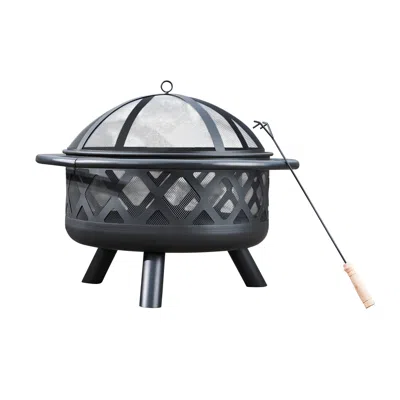 Home - Outdoor 29.5 Inch Round Steel Wood Burning Fire Pit In Black
