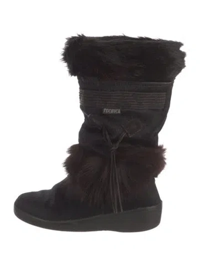 Pre-owned Fur Tassel Accents Snow Boots In Black