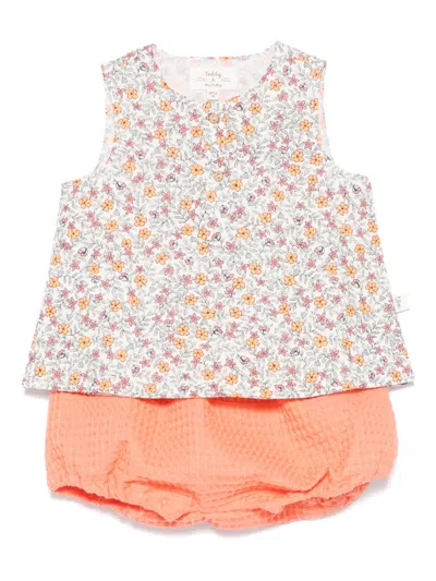 Babies' Floral-print Tank And Shorts Set In Orange