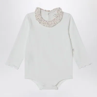 Babies' White Bodysuit With Neckline And Floral Print