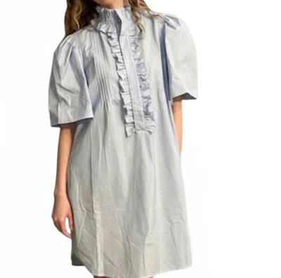 Birta Cotton Poplin Dress In Pale Blue Stripe In Gray