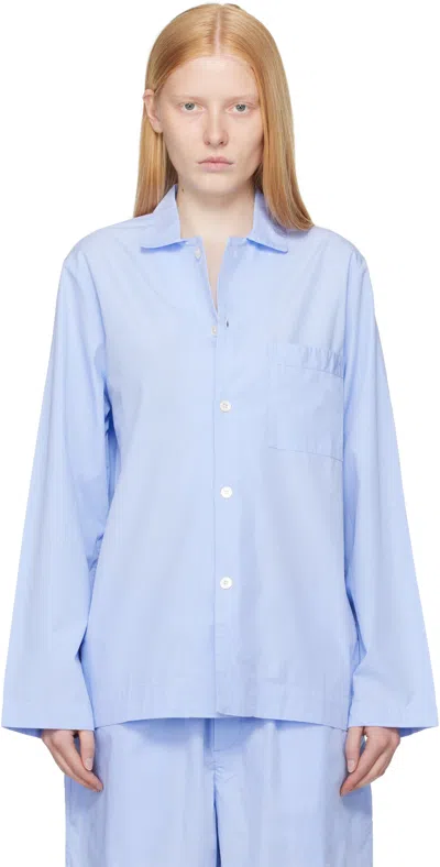 Blue & White Poplin Long-sleeved Pyjama Shirt In Multi