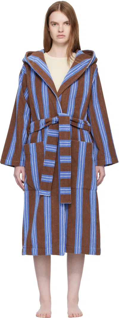 Brown & Blue Terry Hooded Bathrobe In Multi