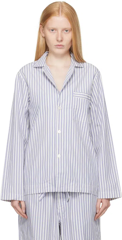 Off-white & Blue Poplin Long-sleeved Pyjama Shirt