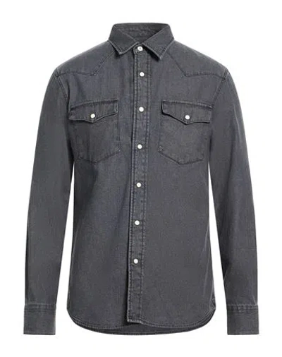 Man Denim Shirt Charcoal Size Xl Cotton In Gray