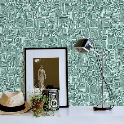 Geo Composition Peel & Stick Wallpaper In Green