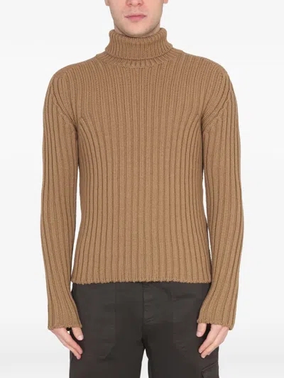 Roll-neck Sweater In Brown