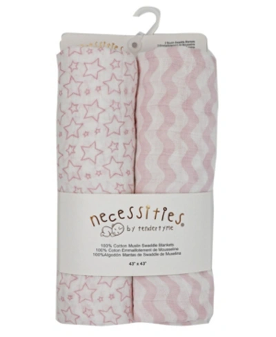 Baby Girls Stars Waves Muslin Swaddle Blankets, Pack Of 2 In Pink
