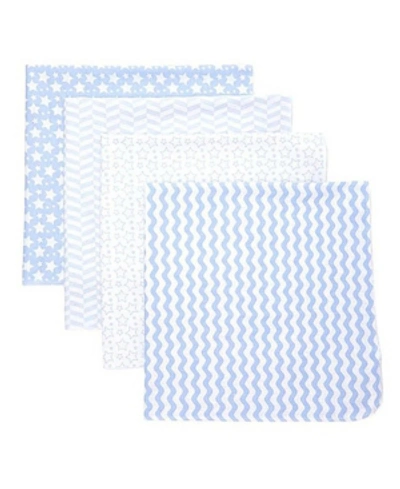 Baby Boys Stars Waves Flannel Receiving Blankets, Pack Of 4 In Blue