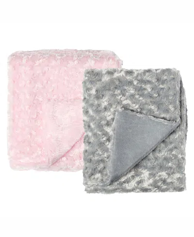Baby Girls Curly Plush Baby Blankets, Pack Of 2 In Pink And Gray