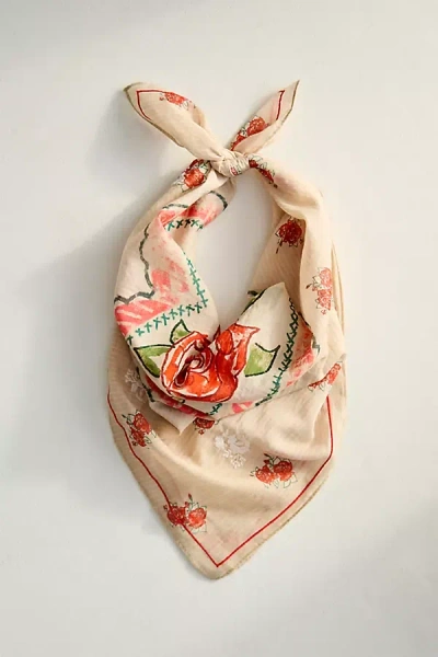 Valentine Roses Embroidered Cotton Bandana In Multi