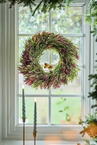 Fresh Grasses + Florals Wreath In Green