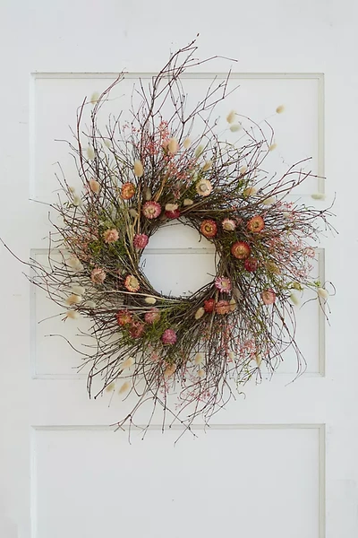 Preserved Caspia, Strawflower + Spanish Moss Wreath In Multi