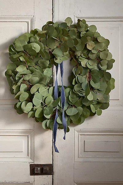 Fresh Baby Blue Eucalyptus Wreath In Green