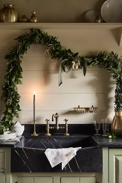 Fresh Ruscus + Olive Leaf Garland In Gold