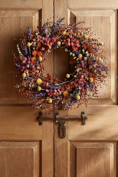 Preserved Flax, Daisy, Strawflower + Amaranthus Wreath In Multi