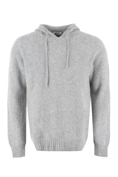 Knit Hoodie With Ribbed Edges For Men In Gray