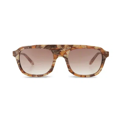 Men's Brown Zinnia Patchwork Tort Aviator Sunglasses