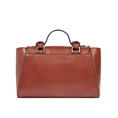 Story Viaggio Marrone Travel Bag crafted in hand buffed vegetable tanned leather, is a structured vintage inspired bag that will only become more coveted with age. Featuring metal frame with etched logo, stud detail and flip lock closure, single reinforced handle, outer zip pocket, detachable padlock and key fob, internal zip pocket, striped lining and gold tone hardware. Made in Italy.